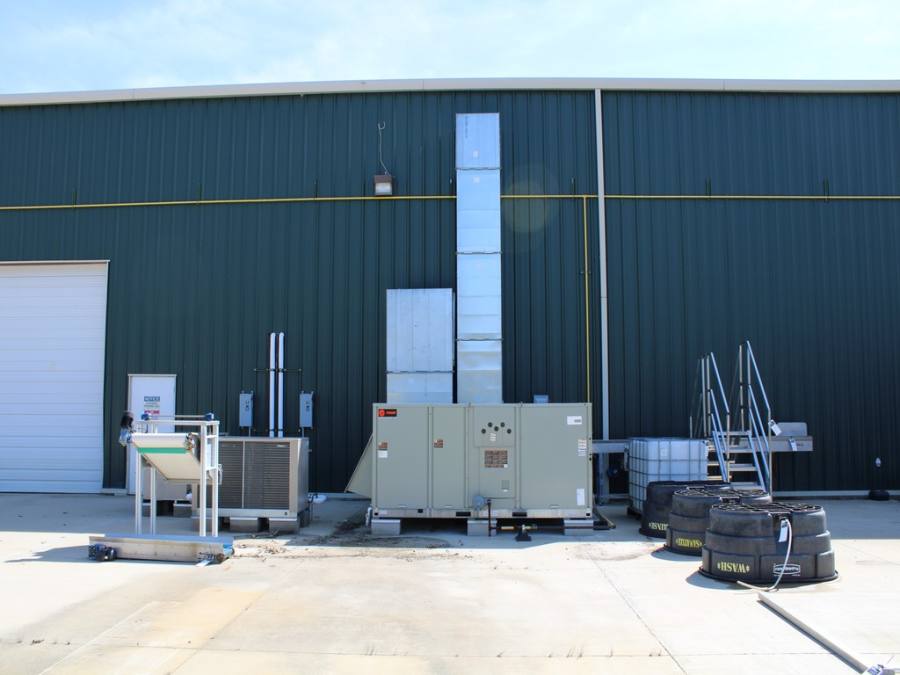 SUMMARY: The former Clearwater Organic Farms Illinois, LLC. facility is located on land leased from Waste Management of Illinois. The facility uses excess steam generated and purchased from the neighboring facility. The waste heat is then used to heat the greenhouse and head house. The offices and cooler room are cooled by an electric heat pump system. The buildings were built in 2007 and upgraded in 2018 to use controlled environment agriculture (CEA) along with floating raft, deep water pond technology. Lighting, greenhouse automation, nutrient/fertilizer, foggers, seeding/harvesting systems were also updated in 2018. A 200KW standby generator assures continuous power to the site. The facility previously grew baby leafy greens year-round and sold to retail stores within a 400 mile radius (one-day shipping time). The 400 mile radius has a population base of approximately 40 million people.