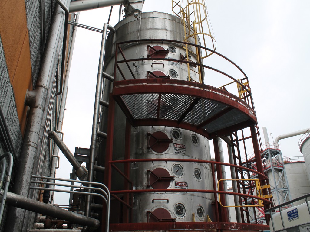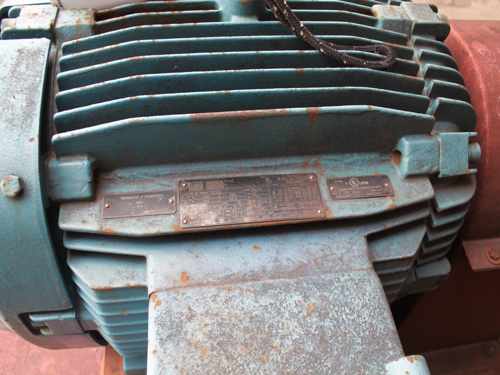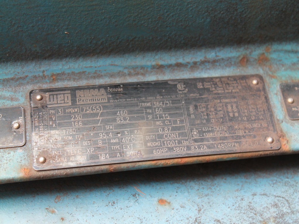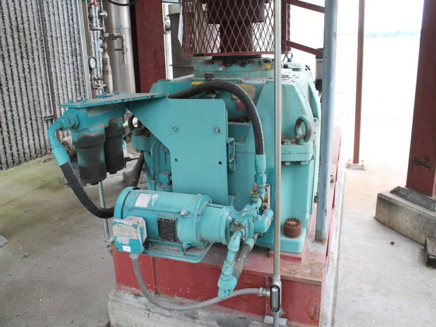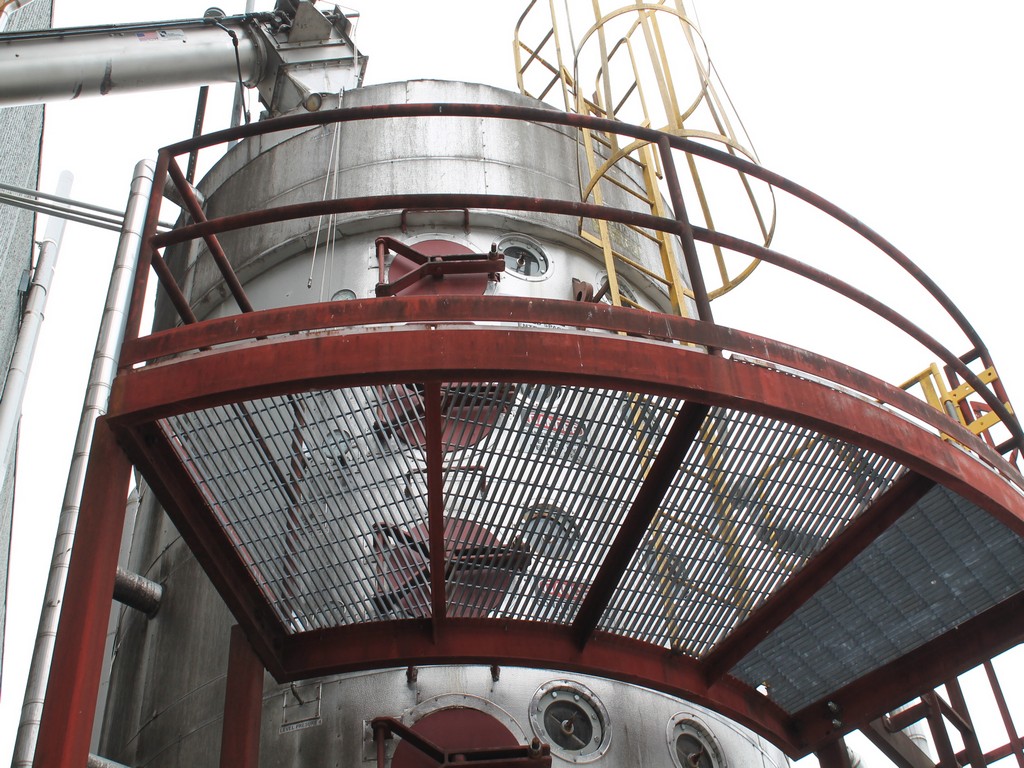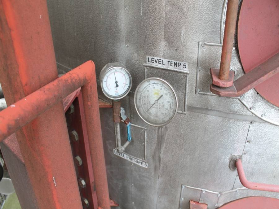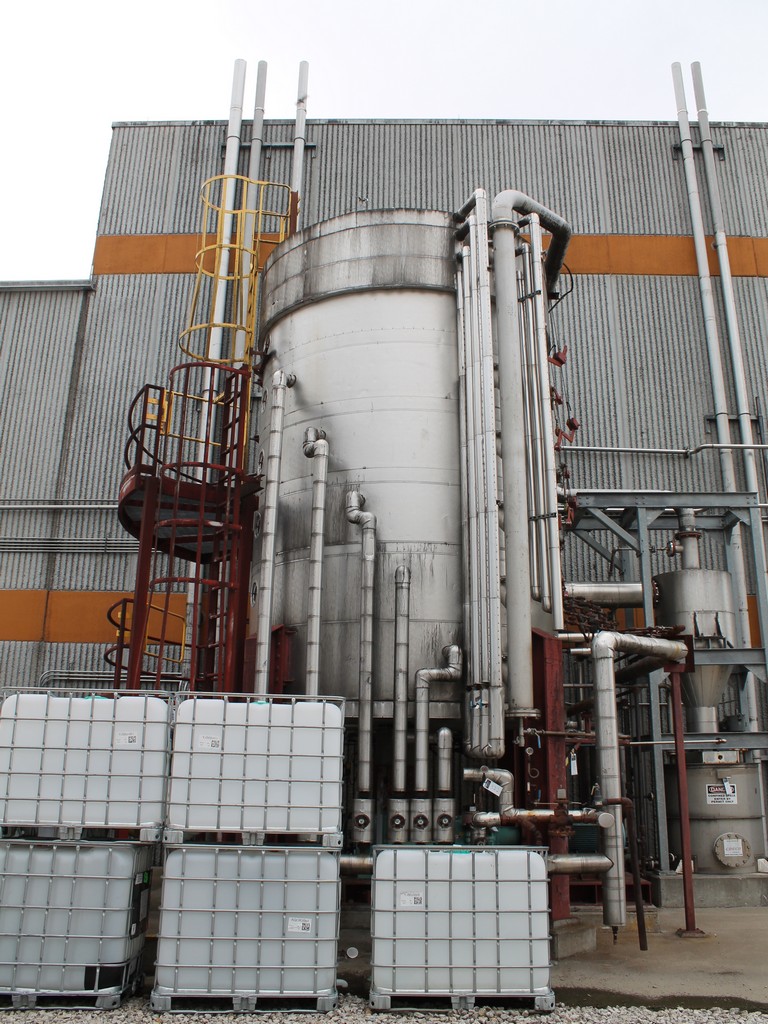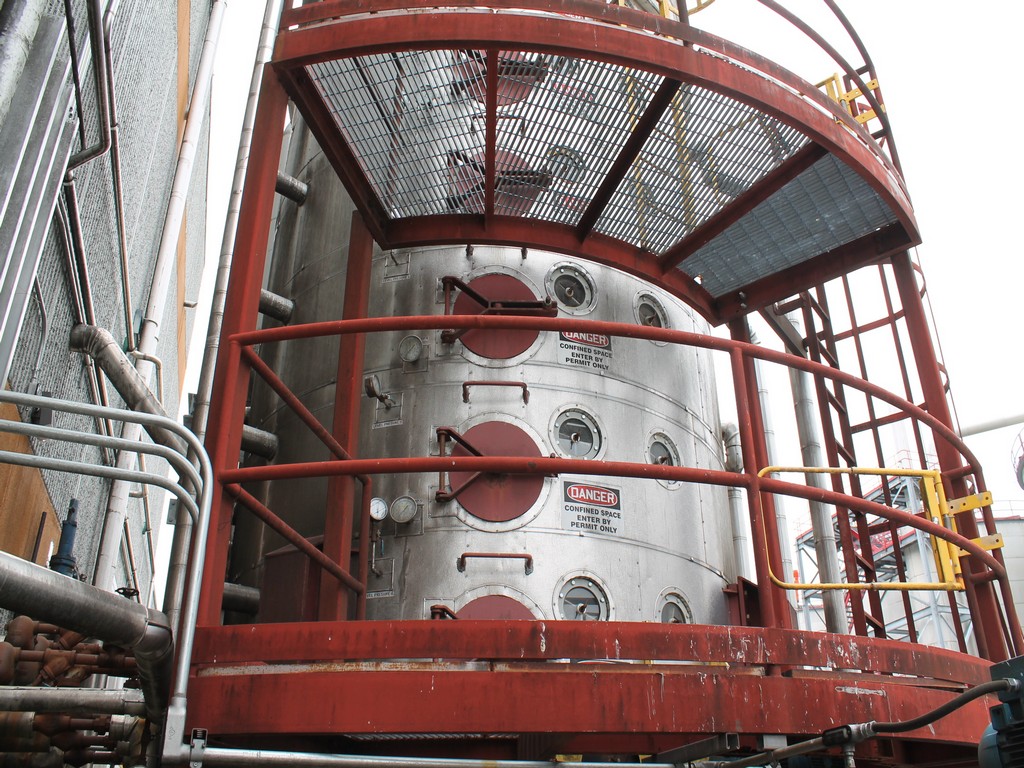 Vertical Stainless Steel Processing Tank, Processes 65 Metric Tons Per Day, Interior Main Shaft with (6) Sweep Arms, DT Feed Rotary Valve with TEXP 1800 RPM Motor, Bottom Rotary Valve, Mounted on Mild Steel Stand with Legs; Hansen QVRG4-CUN-112 Gear Drive, SN UUM002061-1A, Weg 75-HP Electric Motor, Frame 36415T; Includes 4'' Stainless Cylinder and All 6'' Ductwork and Manifolds, Steel Ladder and Work Platform. NOTE: Remove Ducts and Other Items from Building and Patch Holes in Building.