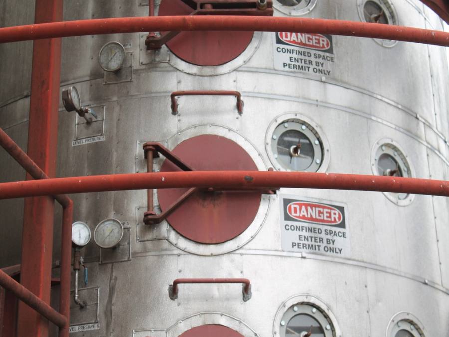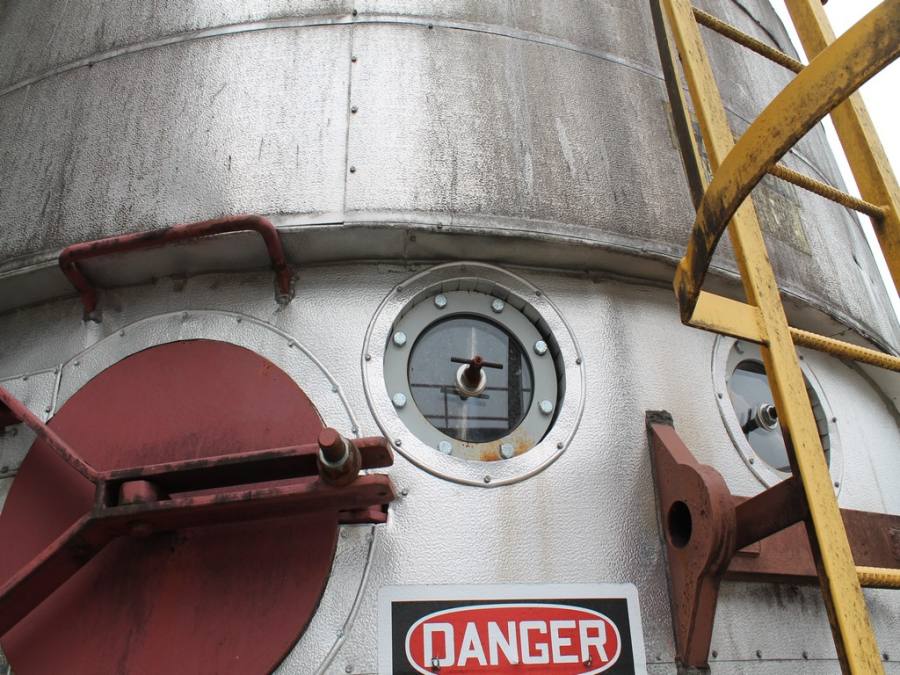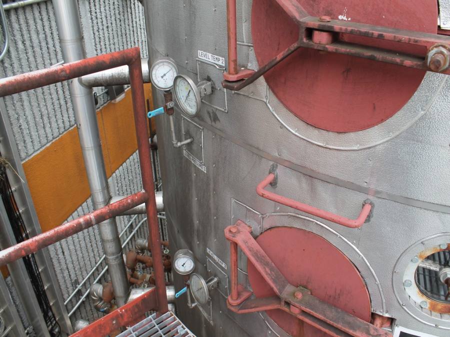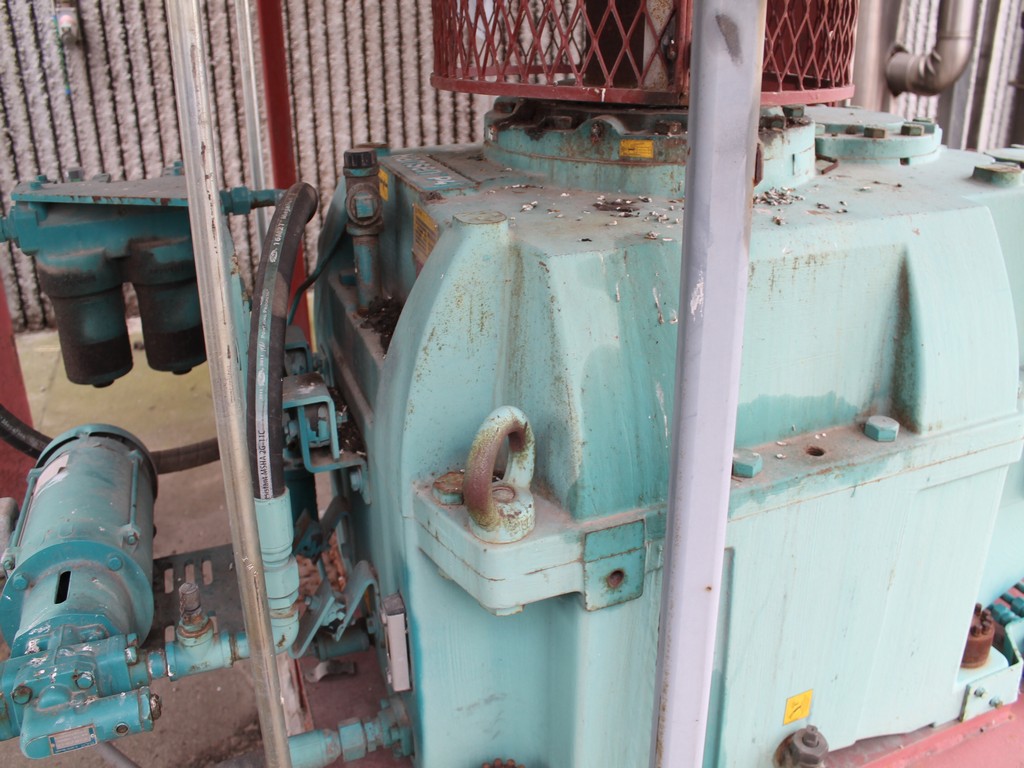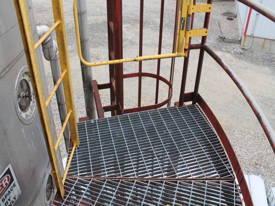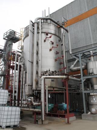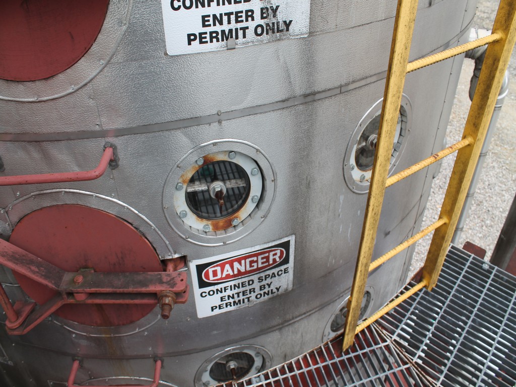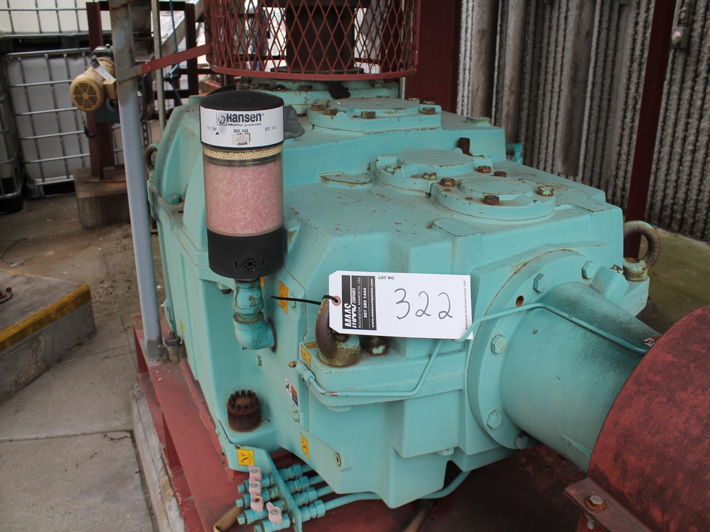 Vertical Stainless Steel Processing Tank, Processes 65 Metric Tons Per Day, Interior Main Shaft with (6) Sweep Arms, DT Feed Rotary Valve with TEXP 1800 RPM Motor, Bottom Rotary Valve, Mounted on Mild Steel Stand with Legs; Hansen QVRG4-CUN-112 Gear Drive, SN UUM002061-1A, Weg 75-HP Electric Motor, Frame 36415T; Includes 4'' Stainless Cylinder and All 6'' Ductwork and Manifolds, Steel Ladder and Work Platform. NOTE: Remove Ducts and Other Items from Building and Patch Holes in Building.