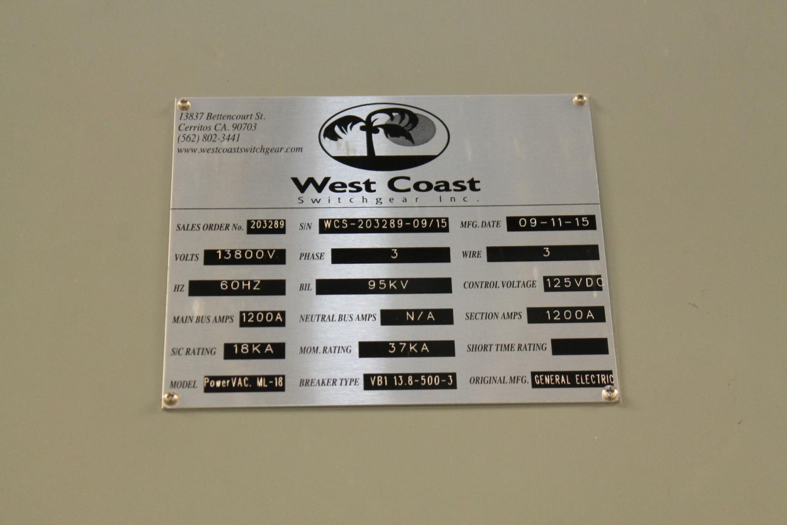 West Coast Switchgear Inc. model PowerVAC. ML-18