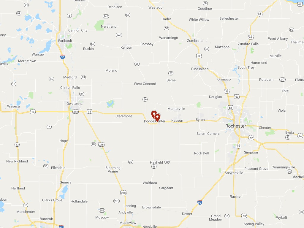 Located conveniently between Owatonna and Rochester, Dodge Center is home to many large manufacturing companies and is just minutes to Rochester, the home of Mayo Clinic and Destination Medical Center.