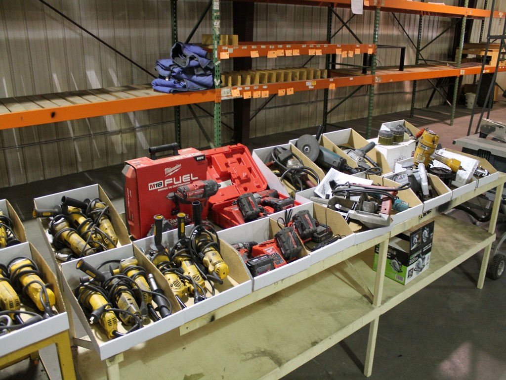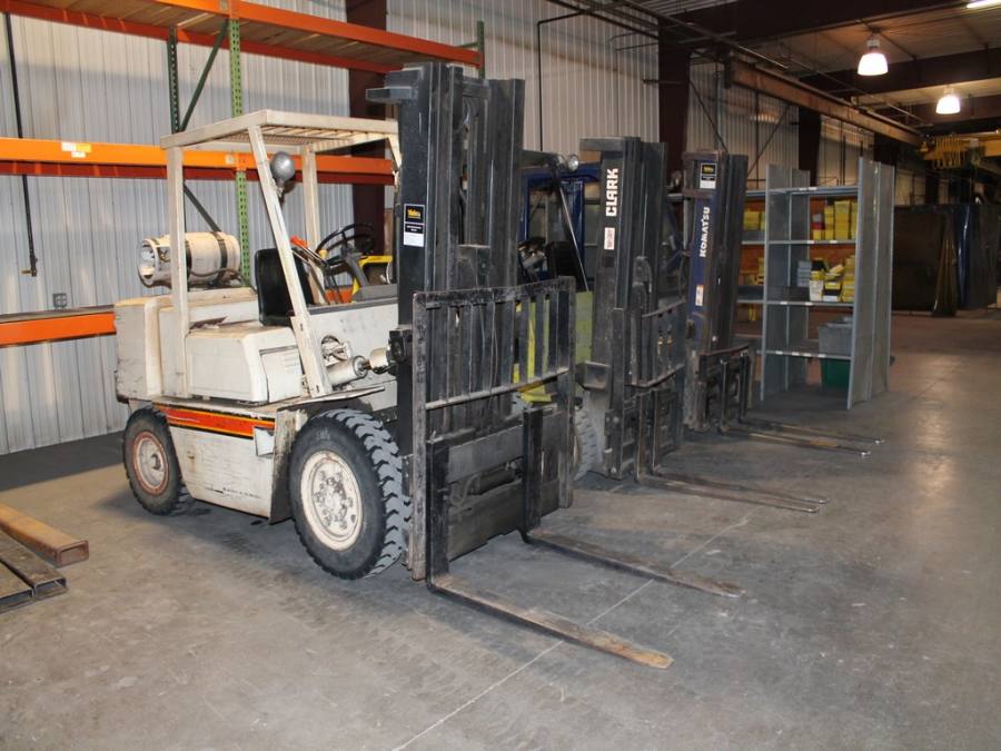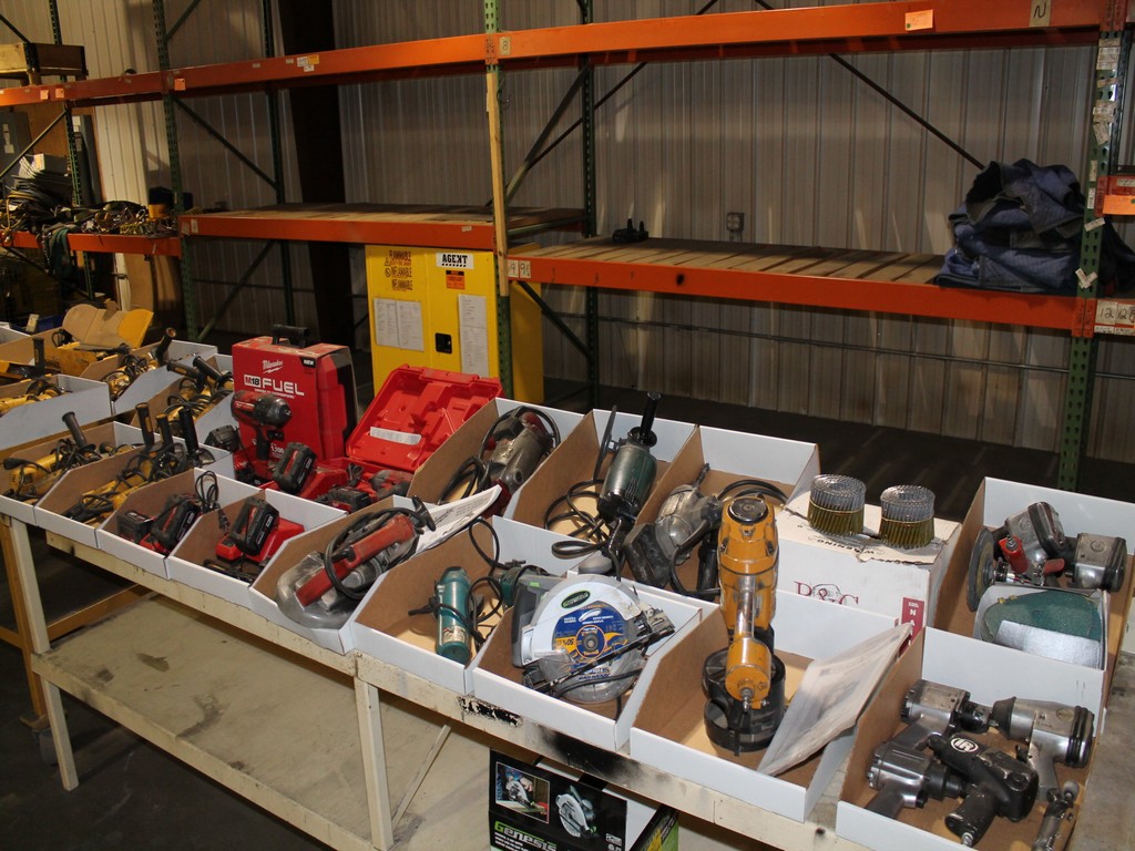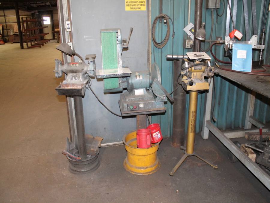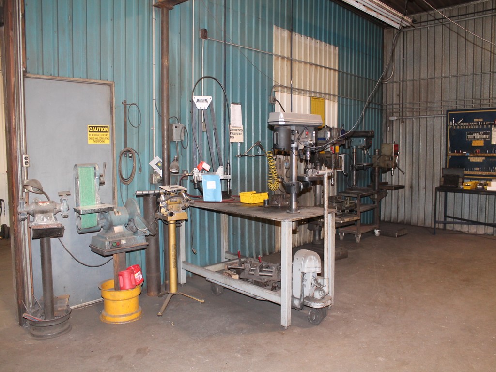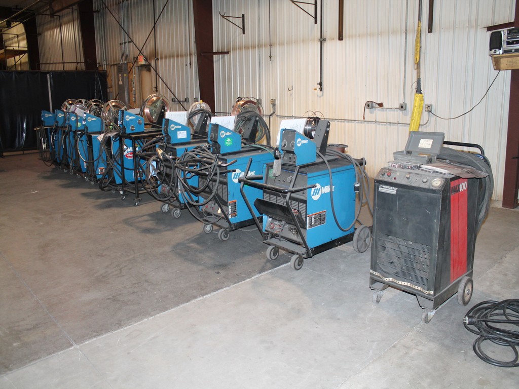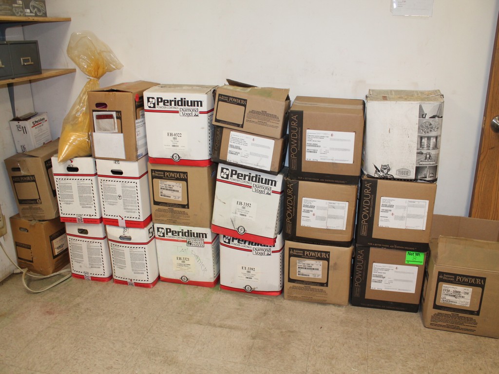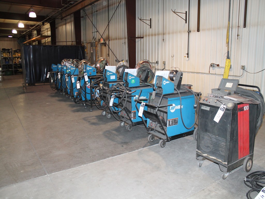 Ford Trucks, Trailers, Forklifts, John Deere Tractor, New Holland Skid-Steer, Kubota Mower, 2-Harley Power Rakes, Tennant Floor Scrubber, Miller & Hypertherm Welders, Welding Curtains, Tables, Clamps, Accessories, Donaldson & Dust Pack Fume Collectors, Metal Working Equipment-130 Ton Press Brake, Vertical Mill, 2-Manual Lathes, Auto Band Saw, Mitering Band Saw, 3-Drill Presses with Tooling, Carts, Dollies, Powder Coating Booth and Oven, Powder Coating Racks, Hooks, Granite Surface Plates and Calibration Instruments, DeWalt, Milwaukee, Black & Decker, Bosch Hand Tools Corded and Cordless - Some New in the Box, Tool Boxes with Contents, Automotive Tools & Supplies, Pallet Racking, Metal Racking, Parts Racking/Storage Bins, Pallet Jacks, Free Standing Bridge Crane, Rolling Steel Gantry Crane, Office Furniture, Cubicle Wall Systems, Computers, Printers, Copier, Break Room Furniture/Appliances.