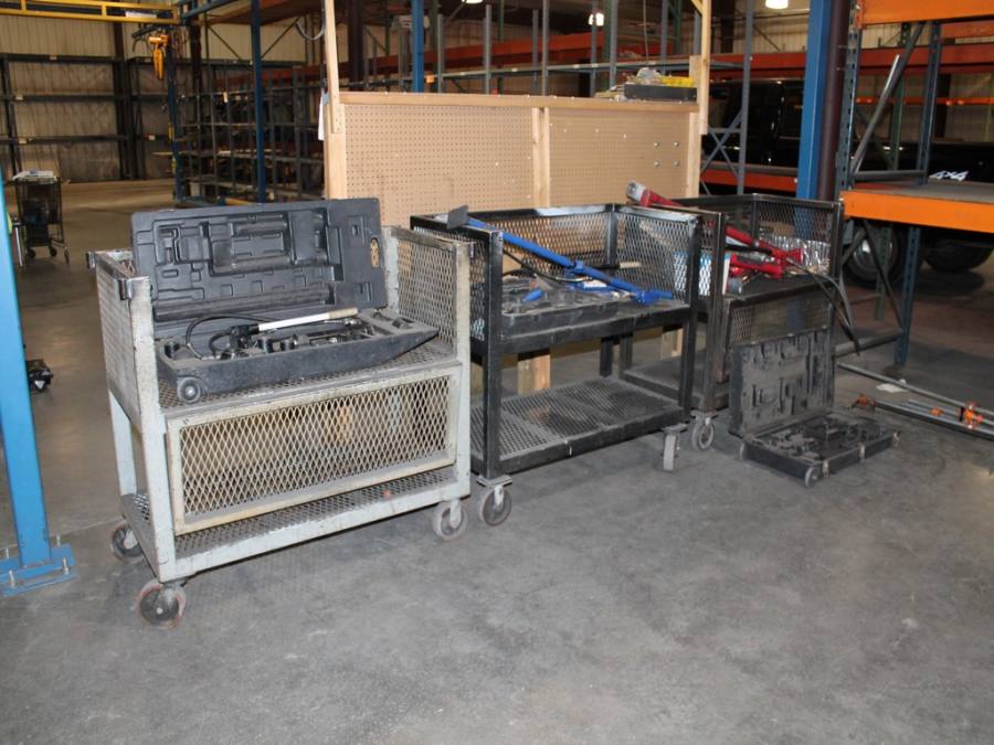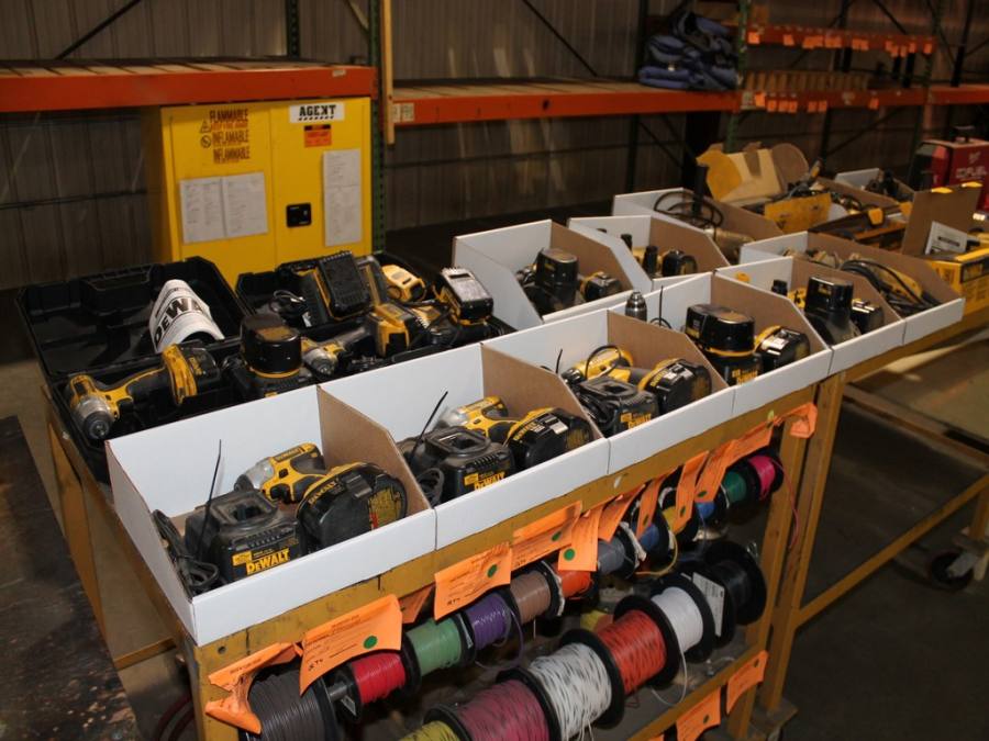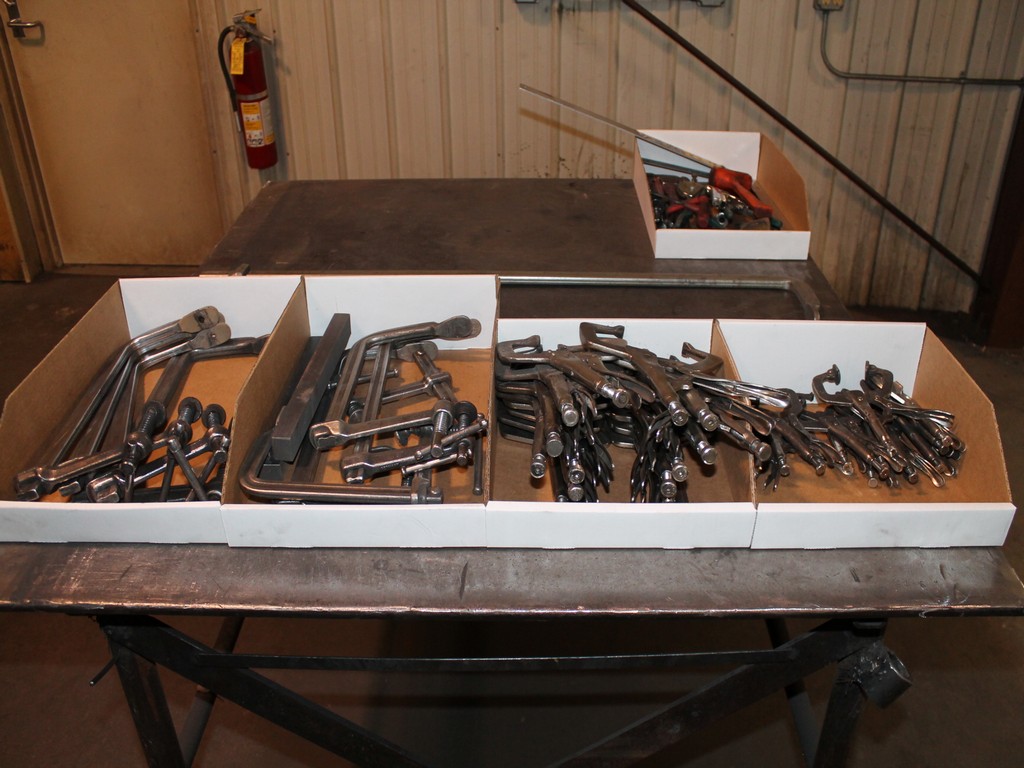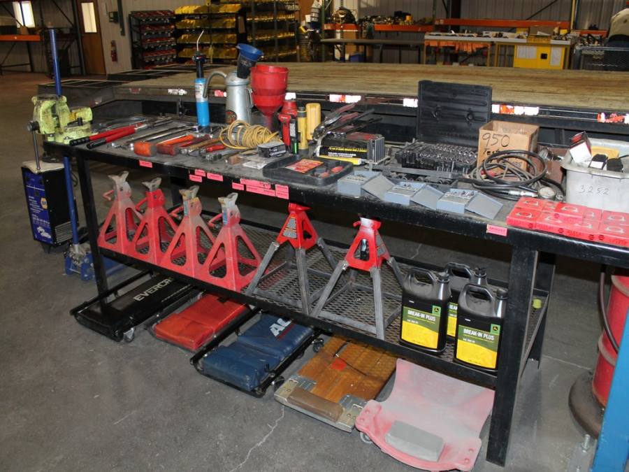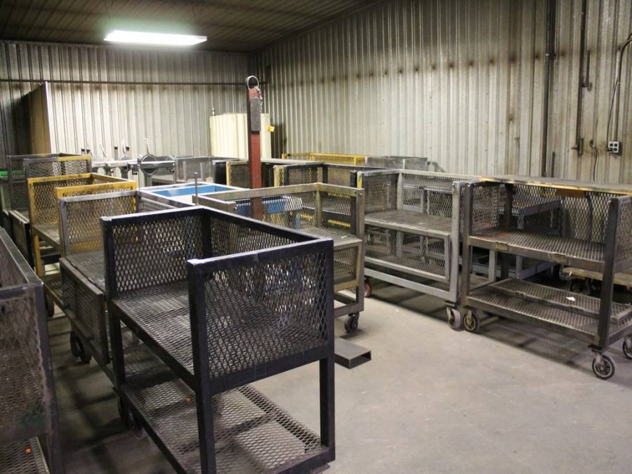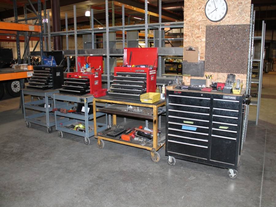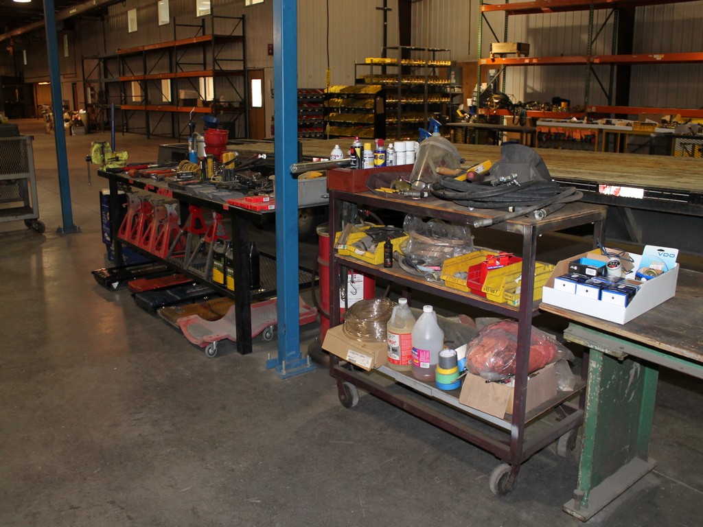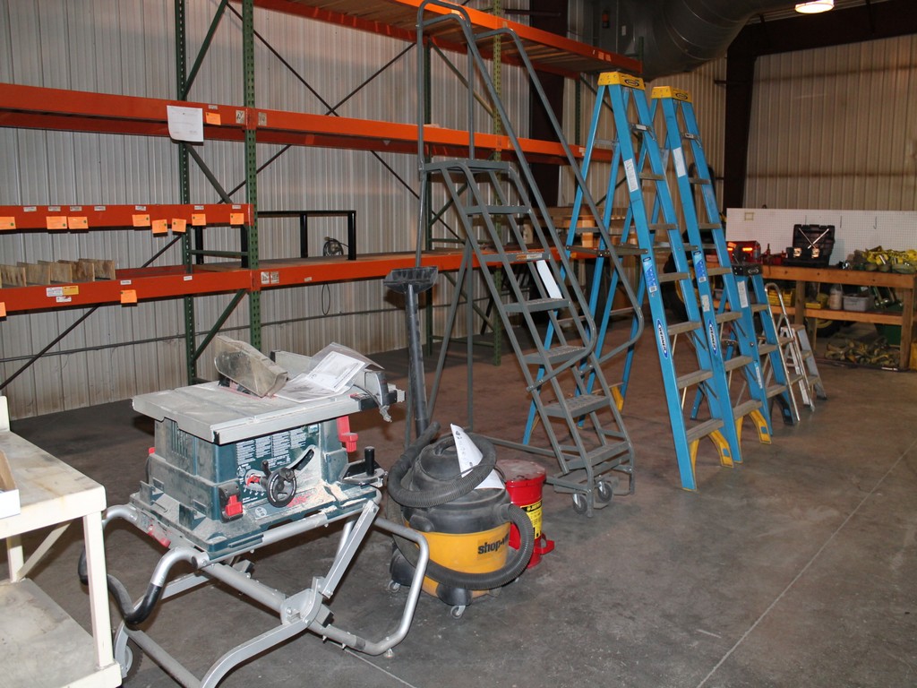 Ford Trucks, Trailers, Forklifts, John Deere Tractor, New Holland Skid-Steer, Kubota Mower, 2-Harley Power Rakes, Tennant Floor Scrubber, Miller & Hypertherm Welders, Welding Curtains, Tables, Clamps, Accessories, Donaldson & Dust Pack Fume Collectors, Metal Working Equipment-130 Ton Press Brake, Vertical Mill, 2-Manual Lathes, Auto Band Saw, Mitering Band Saw, 3-Drill Presses with Tooling, Carts, Dollies, Powder Coating Booth and Oven, Powder Coating Racks, Hooks, Granite Surface Plates and Calibration Instruments, DeWalt, Milwaukee, Black & Decker, Bosch Hand Tools Corded and Cordless - Some New in the Box, Tool Boxes with Contents, Automotive Tools & Supplies, Pallet Racking, Metal Racking, Parts Racking/Storage Bins, Pallet Jacks, Free Standing Bridge Crane, Rolling Steel Gantry Crane, Office Furniture, Cubicle Wall Systems, Computers, Printers, Copier, Break Room Furniture/Appliances.