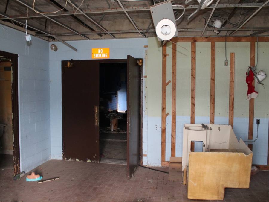 The property sits back from the road behind an automotive repair facility. It can be accessed from two driveways off of Avenue A. The property consists of the main building, large paved parking area and wooded area to the rear. Its large raised ceiling area makes it a perfect candidate to get repurposed into a shop or some other business that needs added ceiling height.
