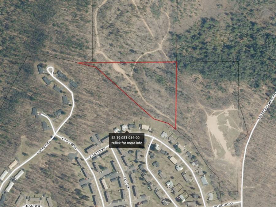 Just 15 minutes southeast of Marquette, the largest city in the Upper Peninsula of Michigan is Property 14. Located northeast of the Sidewinder/Fortress St. intersection, this beautiful wooded triangle shaped lot consists of 6.38 acres. The property sits back behind the houses and does not have access from Fortress Street. From Fortress Street facing to the northeast looking between the two homes on either side, you can see a bare lot that was not built on. Property 14 adjoins the back yards of those properties. There is a dirt road that goes through the property that originates off Sporley Lake Road to the east. It appears that is how people are accessing the parcel now.