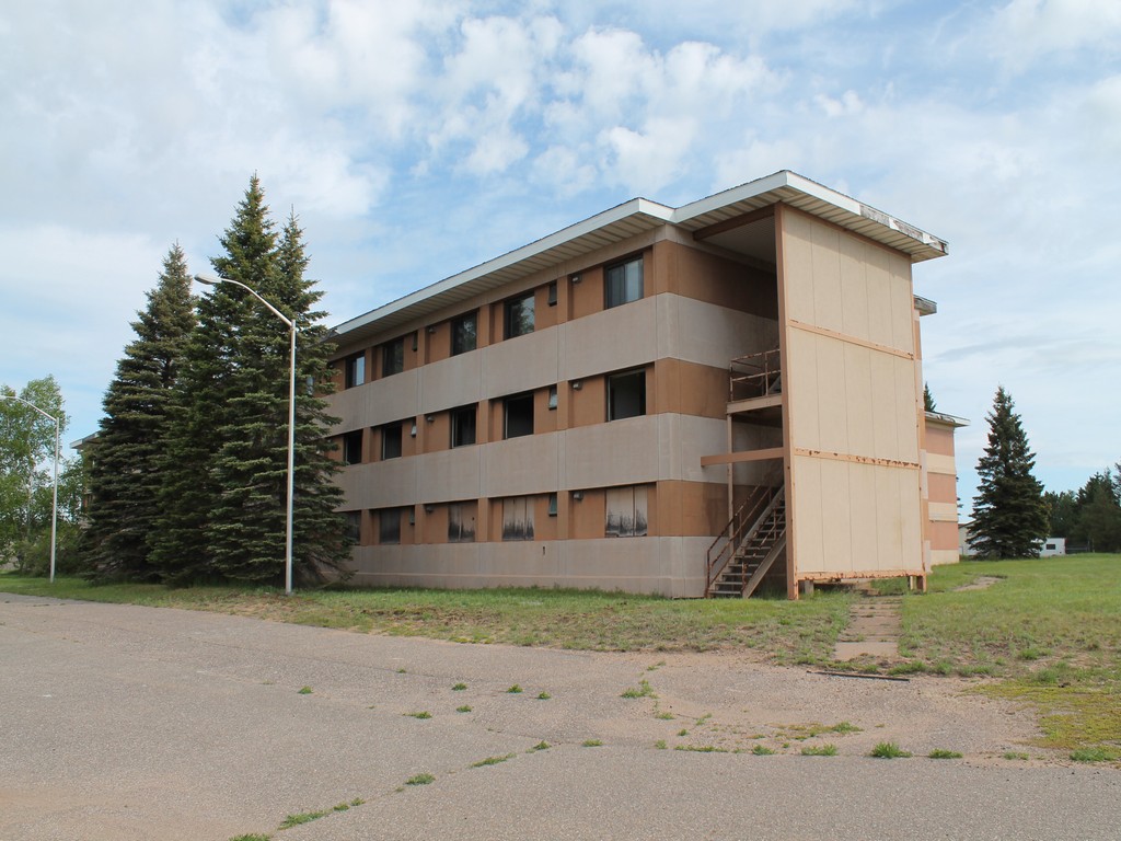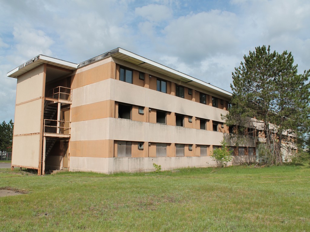 Located at the Former K. I. Sawyer Air Force Base, just off of the North end of Ave A and adjacent to the Gwinn-Sawyer Veterinary Clinic is Property 8. This site includes two 3-Story Cement Block Dormitory Buildings with paved parking lot areas. When the Air Force Base was active, the Air Force housed enlisted men and bachelor officers in the two buildings.