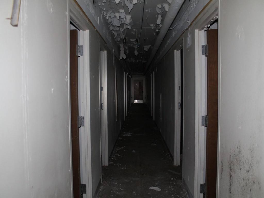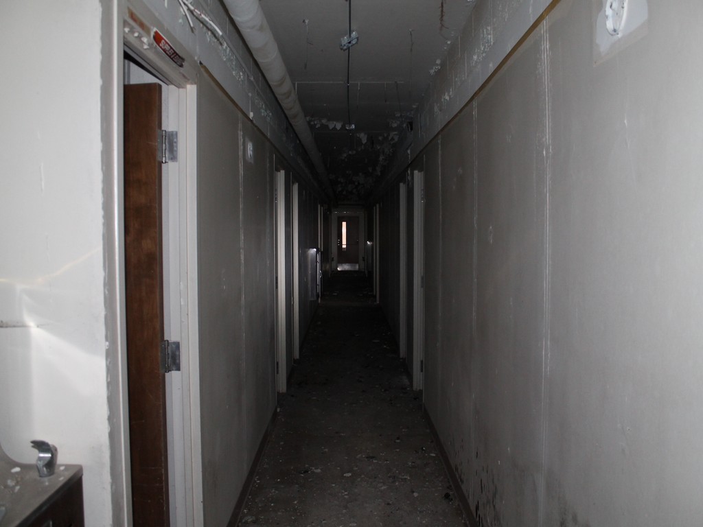 Building 814 is approximately 202 long x 39 wide and totals 25,084 Sq. Ft. It consists of 24 bedrooms on the main floor with each set of rooms sharing a common bathroom. Second and third floors had a similar floor plan but increased the bedrooms to 26 per floor for a total of 76.