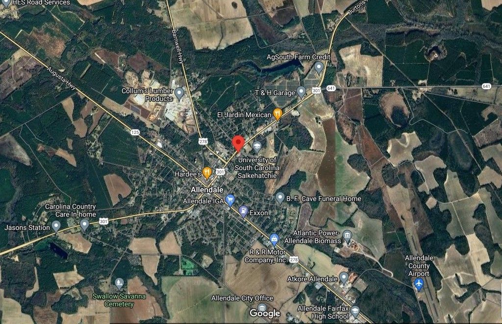 Located in the S.W. Corner of South Carolina, Allendale and its Small Town Environment (Population 2,694) is 1 ½ Hours from the Atlantic Ocean and the Beaches of Tybee Island, Hilton Head Island, Savannah, Charleston, Columbia and 1 Hour from Augusta, Georgia.